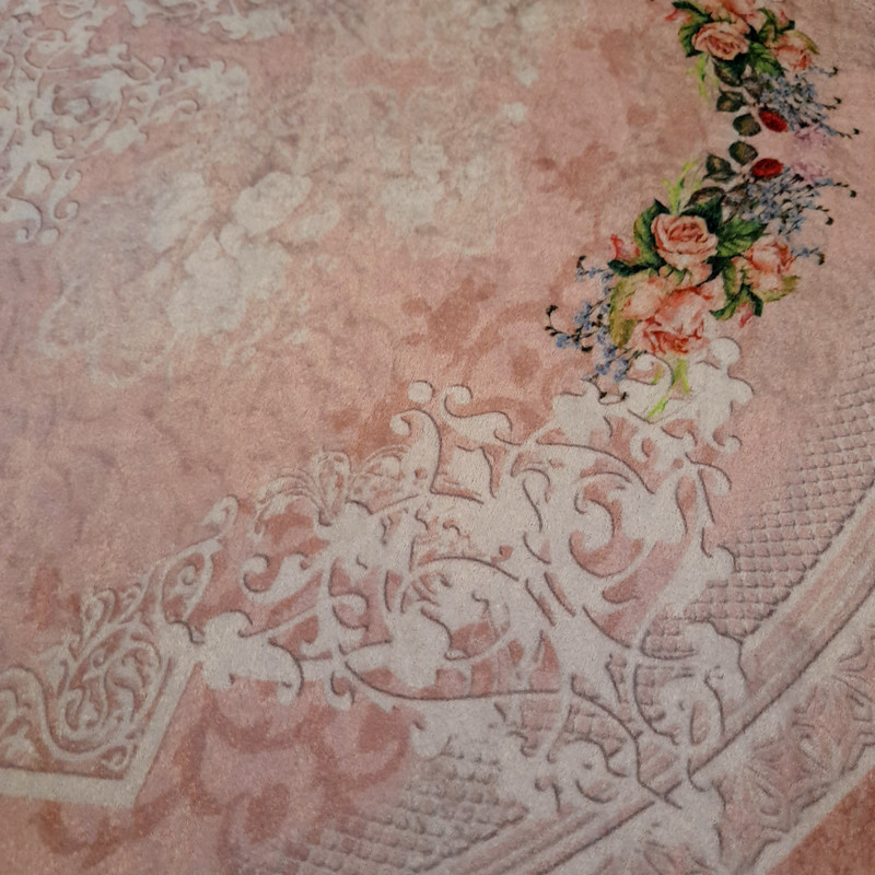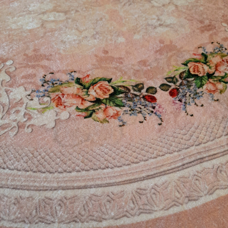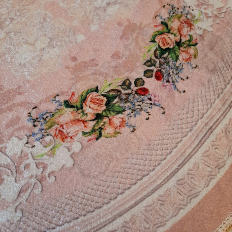 فرش پارچه ای مدل بیضی کد W1 زمینه صورتی