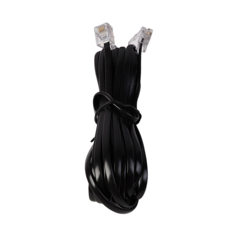 - سیم تلفن دو سر سوکت رنگ مشکی , مناسب اتصال خط تلفن به تلفنهای رومیزی و بیسیم , 4 پین , کیفیت سیم بسیار بالا