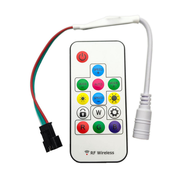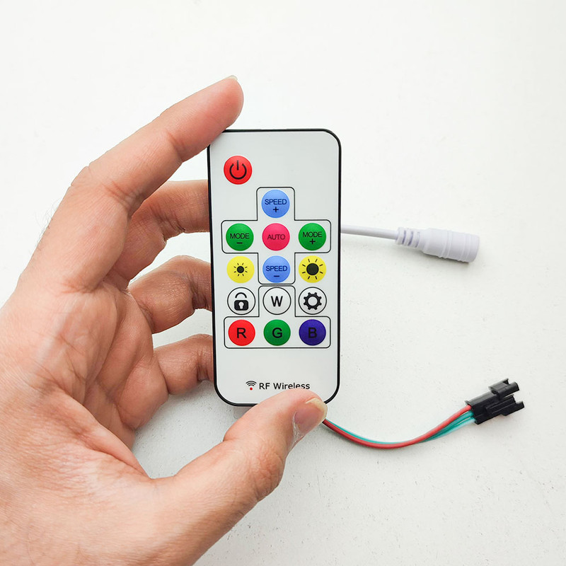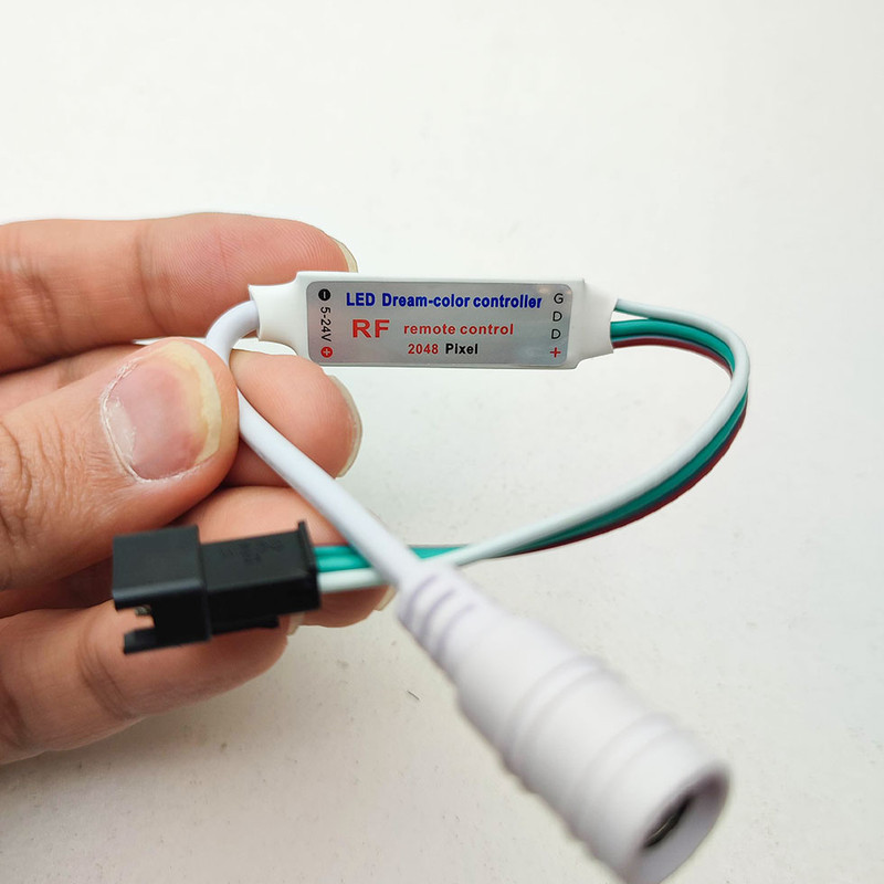 سایر توضیحات : محدوده ی ولتاژ 5 تا 24 (برحسب اینکه به ریسه یا پیکسل متصل میشود همان ولتاژ ترانس رو به ریسه یا پیکسل منتقل میکند) ارتباط به صورت RF (رادیویی) قابلیت کنترل 2048 پیکسل ws 2811