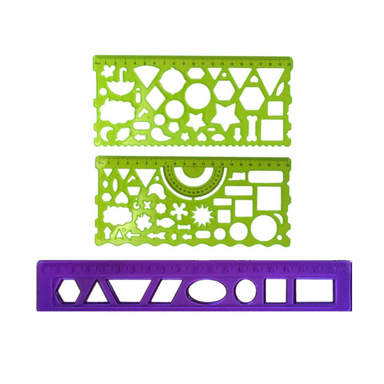 مجموعه سه عددی شامل : 1 عددی خط کش ژله ای 20سانتی متری 1 عدد شابلون دو قولو اشکال هندسی ژله ای