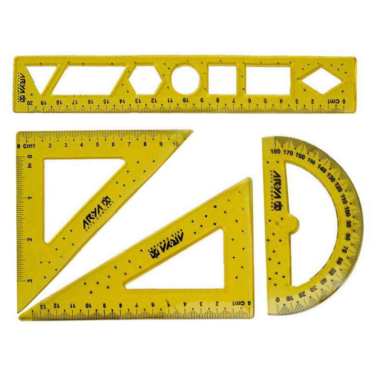 بدنه ساخته شده از جنس پلاستیک ژله ای با درجه بندی سانتی متر و مقاوم در برابر شکستگی دو عدد گونیا یکی به طول 10 سانتی متر و دیگری به طول 13 سانتی متر یک عدد خط کش به طول 20 سانتی متر، یک عدد نقاله 180 درجه