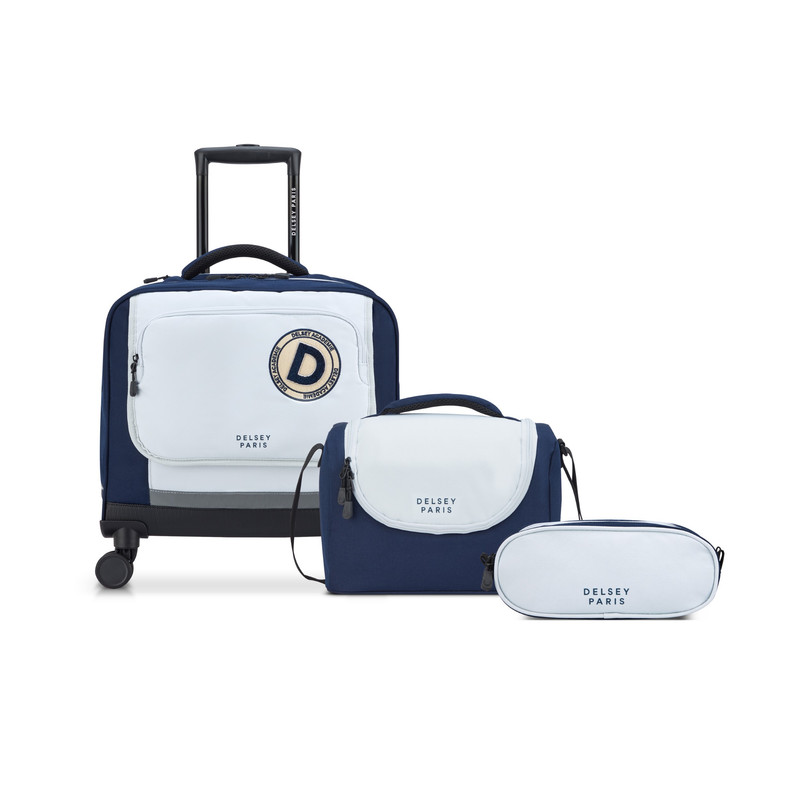 کیف دستی چرخ دار مدرسه دلسی مدل ACADEMIE Back To School 2025 به همراه جامدادی و کیف غذا