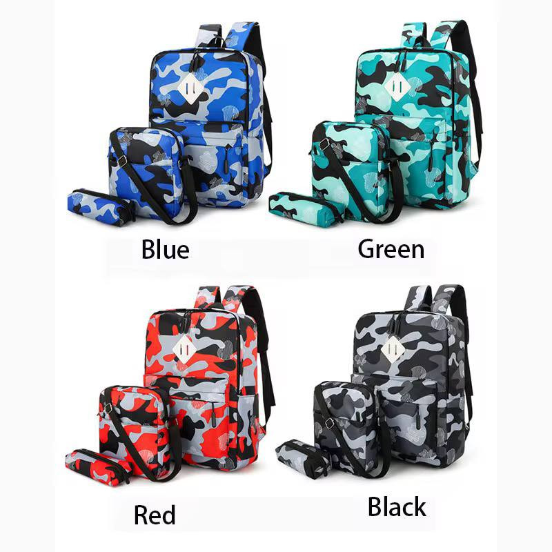 کوله پشتی مدرسه مدل چریکی به همراه کیف رودوشی و جامدادی