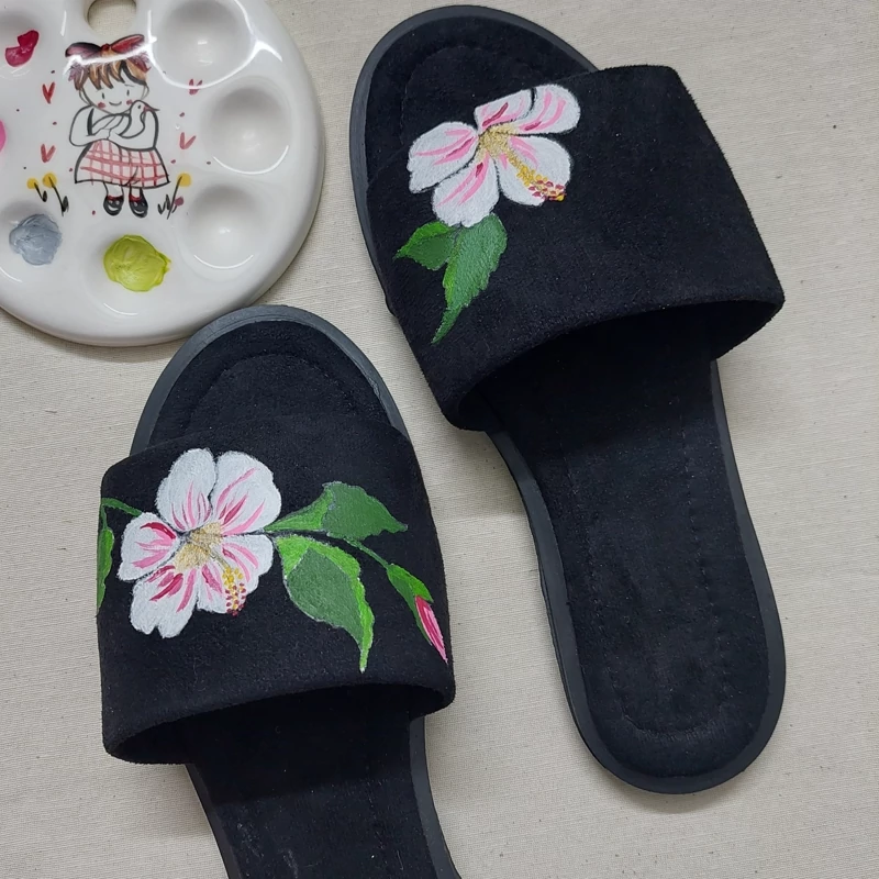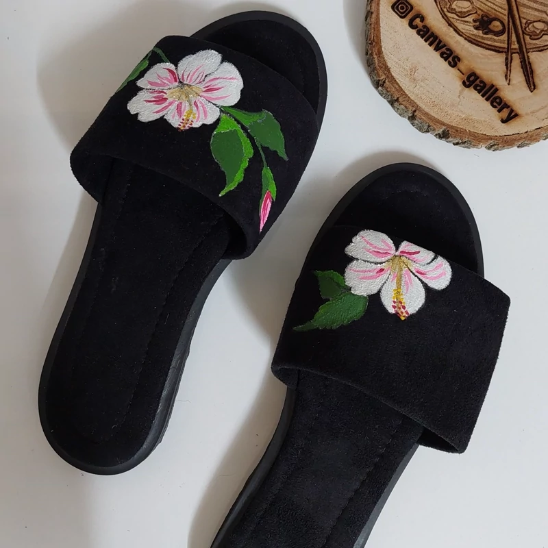 صندل سوییت مخمل، صندل روفرشی،صندل نقاشی شده،صندل مشکی،صندل بدون پاشنه
