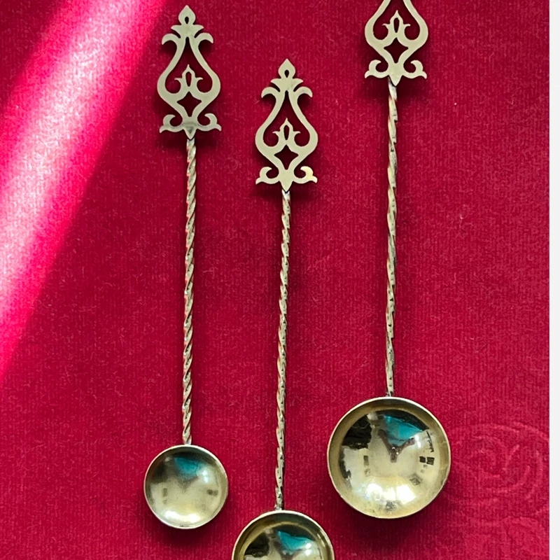 قاشق های برنجی دستساز جهت استفاده در کافی شاپ ها ، رستوران ها و منزل برای قهوه خوری ،مرباخوری چایخوری ، بستنی و دسر خوری و قاشق ادویه و قاشق شکر و چای