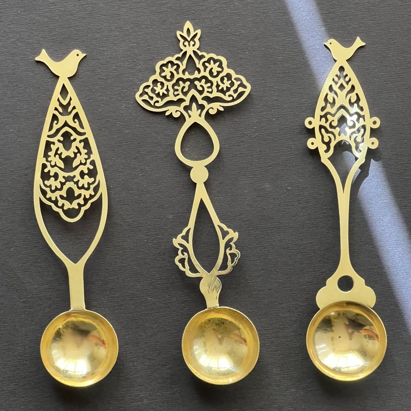 قاشق های برنجی دستساز جهت استفاده در کافی شاپ ها ، رستوران ها و منزل برای قهوه خوری ،مرباخوری چایخوری ، بستنی و دسر خوری و قاشق ادویه و قاشق شکر و چای