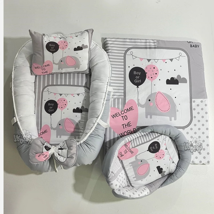 تشک گارد دار نوزاد طرح فیل دخترانه 4 تکه
