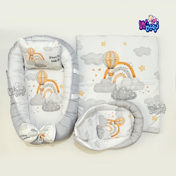 تشک گارددار یا لبه دار نوزاد همراه بالشت و لحاف و آغوشی طرح بالن