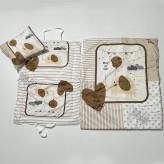 📢ست تشک گارد دار و قنداق سوییسی طرح فیل و بادکنک با چهار رنگ بندی کرم قهوه ای ،طوسی، آبی و صورتی موجود است.