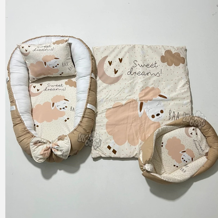 تشک لبه دار گارد نوزاد 4 تکه طرح بره کرم قهوه ای (جدید)