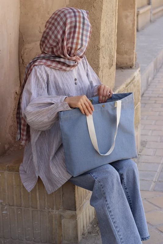 کیف پارچه ای دوشی A3 رنگ یاسی پاستلی