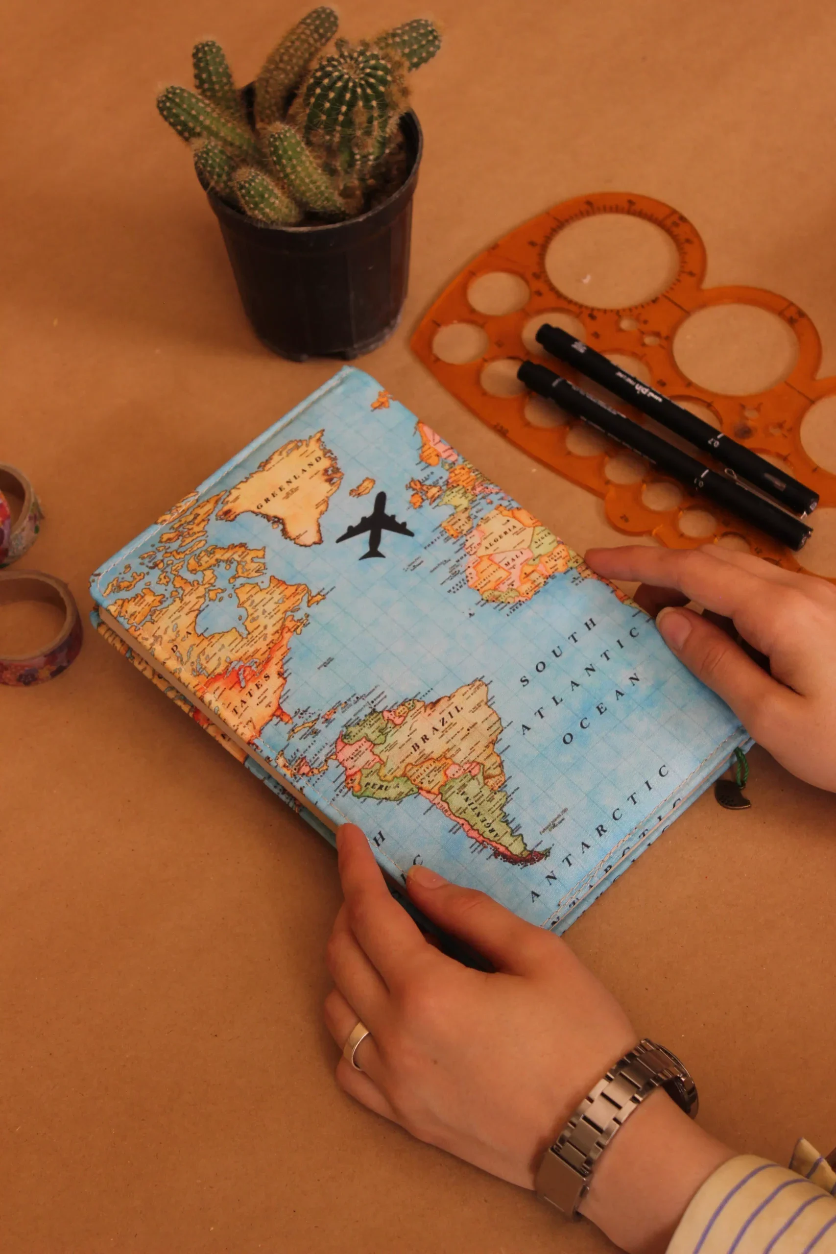 دفتر خط دار سایز 14.5*21 طرح دور دنیا با هواپیما