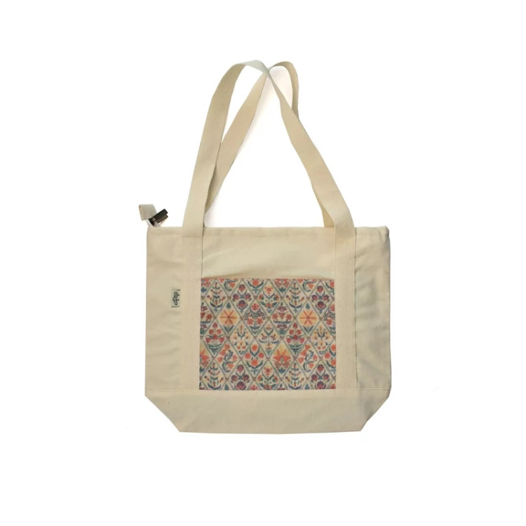 کیفیت بالای پارچه به کار رفته در مدل کیف تکه دوزی پارچه ای که کتان پارچه ای است از مزایای دیگر کیف چهل تیکه پارچه ای هست که دوام و عمر کیف رو بالا برده و شستوشویش رو امکانپذیر و آسان کرده.
