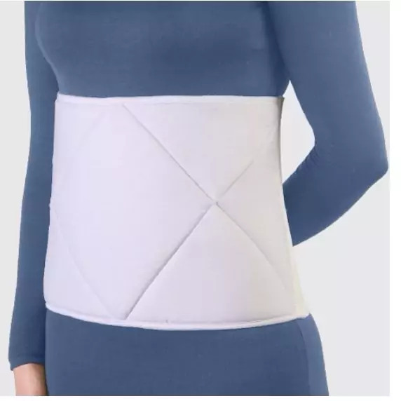 شکم بندباید طوری بسته شودکه قسمت مشمع رنگی درقسمت جلوقرار بگیرد باسطح بدن تماس داشته باشدبه گونه ای که دو سرشکم بنددرقسمت پشت کمرروی هم بسته شوند.