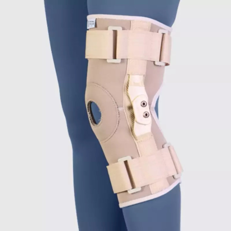 زانوبند مفصل دار نئوپرن مدل طب و صنعت کد 45120 با مفصل چند محوره پلی کربنات در سایزهای مختلف