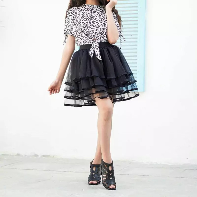 دامن دخترانه توری مناسب 2 تا 17 سال ، تک رنگ مشکی
