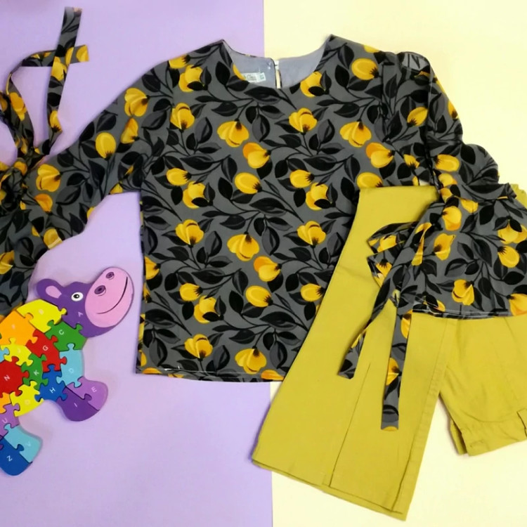ست شومیز و شلوار مجلسی ، شومیز کرپ مازراتی و شلوارک. کتان ، 7 تا 14 سال