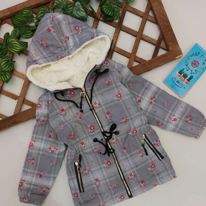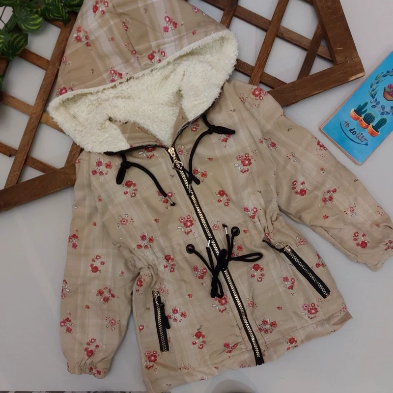 کاپشن دخترانه رویه کتان داخل خز سایز 55 تا 65 ، مناسب 7 تا 11 سال دو رنگ عالی