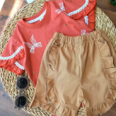 ست تیشرت شلوارک دخترانه سایز 40 تا 55 مناسب 2/5 تا 9 سال ، جنس نخ پنبه اعلا در 4 رنگ عالی