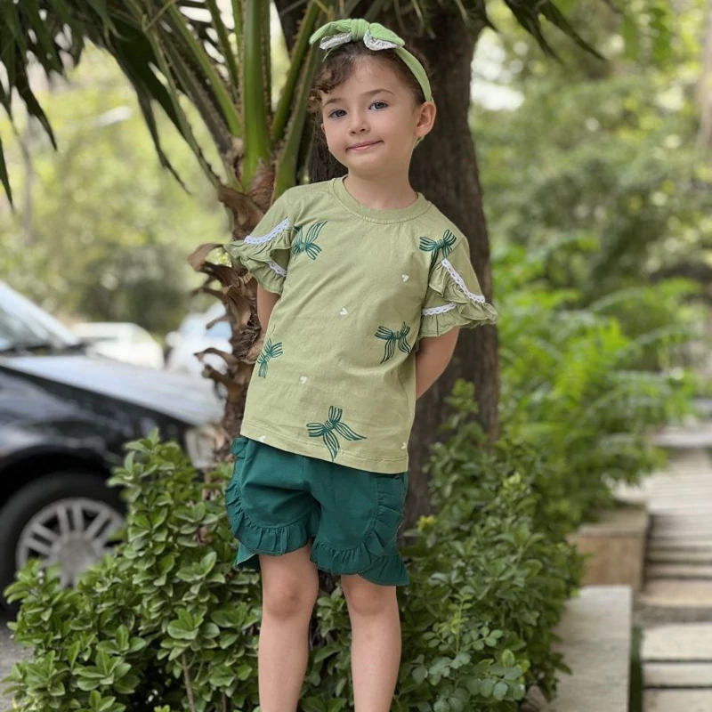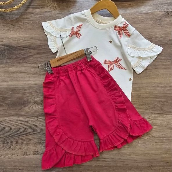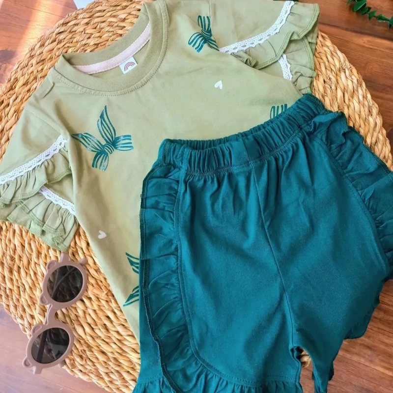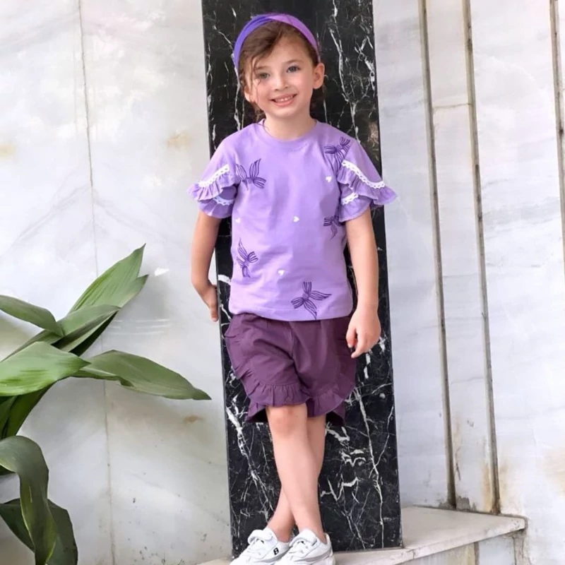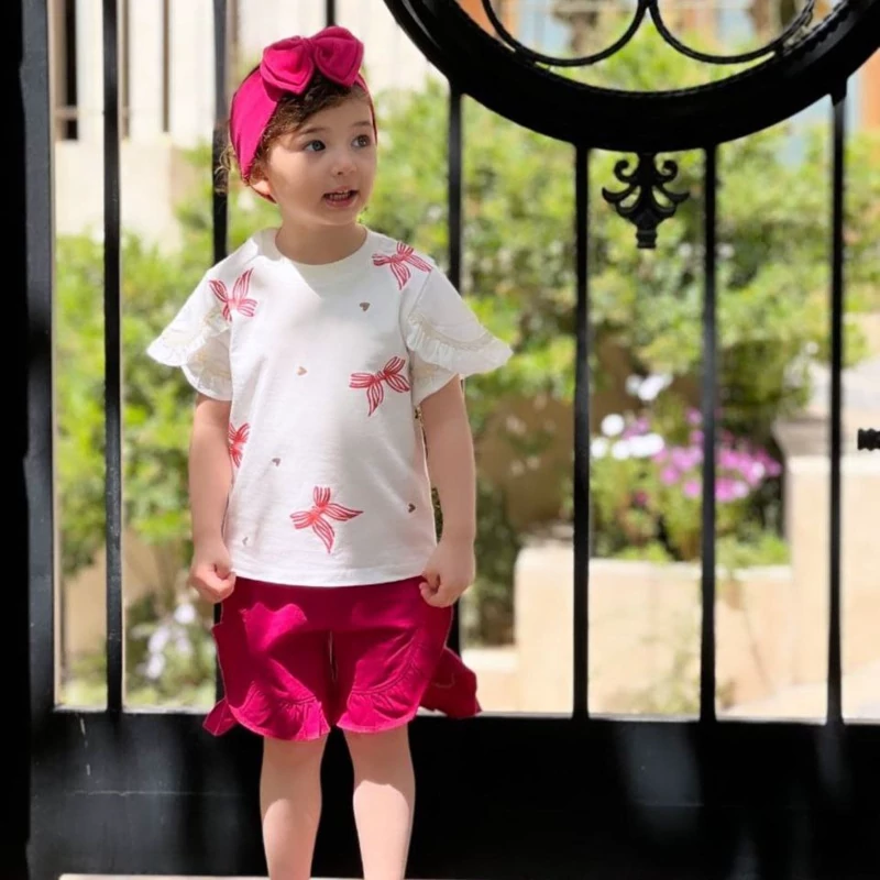ست تیشرت شلوارک دخترانه سایز 40 تا 55 مناسب 2/5 تا 9 سال ، جنس نخ پنبه اعلا در 4 رنگ عالی