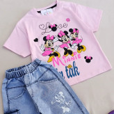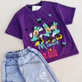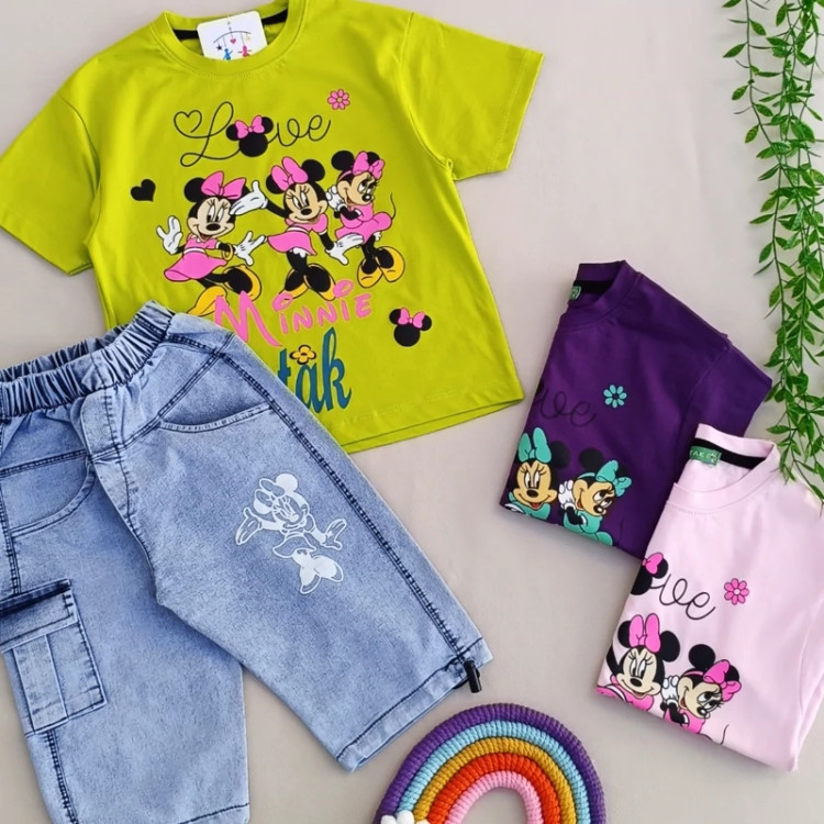 ست تیشرت شلوارک مجلسی دخترانه سایز 40 تا 55 ، تیشرت نخ پنبه شلوارک جین