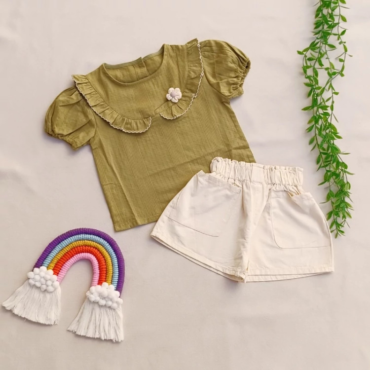 شومیز شلوارک دخترانه وارداتی مناسب 1 تا 5 سال تک رنگ