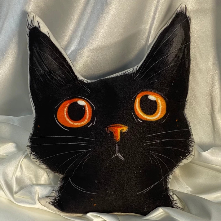کوسن فانتزی طرح گربه سیاه پارچه مخمل