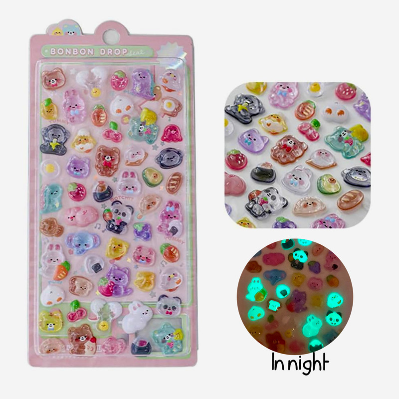 استیکر برجسته شبتاب سه بعدی طرح فانتزی شامل ۵۳ عدد برچسب حبابی در یک ورق می باشد که تعدادی از آن ها شب تاب هستند که می توانید برای تزئین موبایل، تبلت، دفتر،لب تاپ و… استفاده کنید.طرح متنوع و جذاب با چسبندگی بسیار بالا، کیفیت چاپ High Quality و برش دقیق، مناسب برای تمام سطوح صاف است