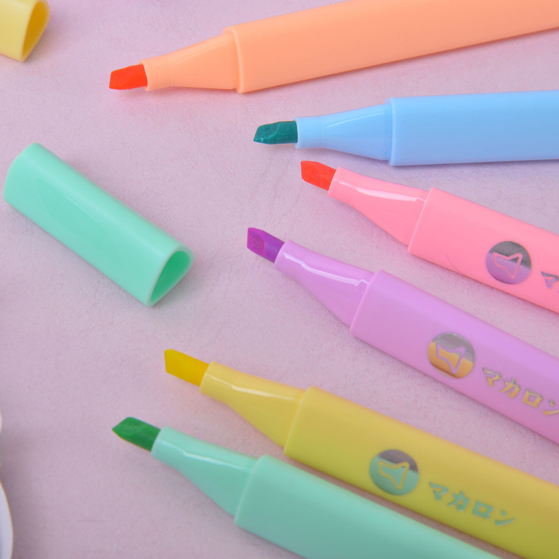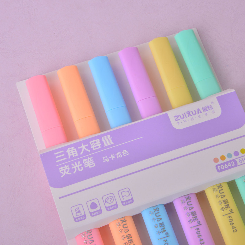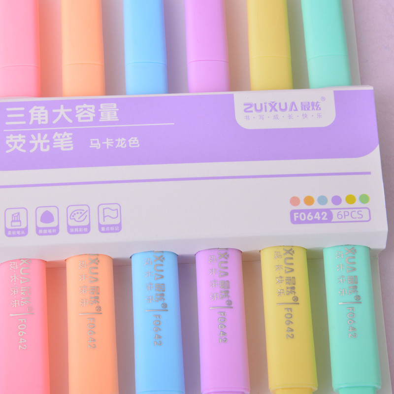 6 عدد ماژیک هایلایتر با فرم هرمی شکل با رنگ تقریبا نرم و پاستلی کمرنگ ( کد روی ماژیک F0642 )