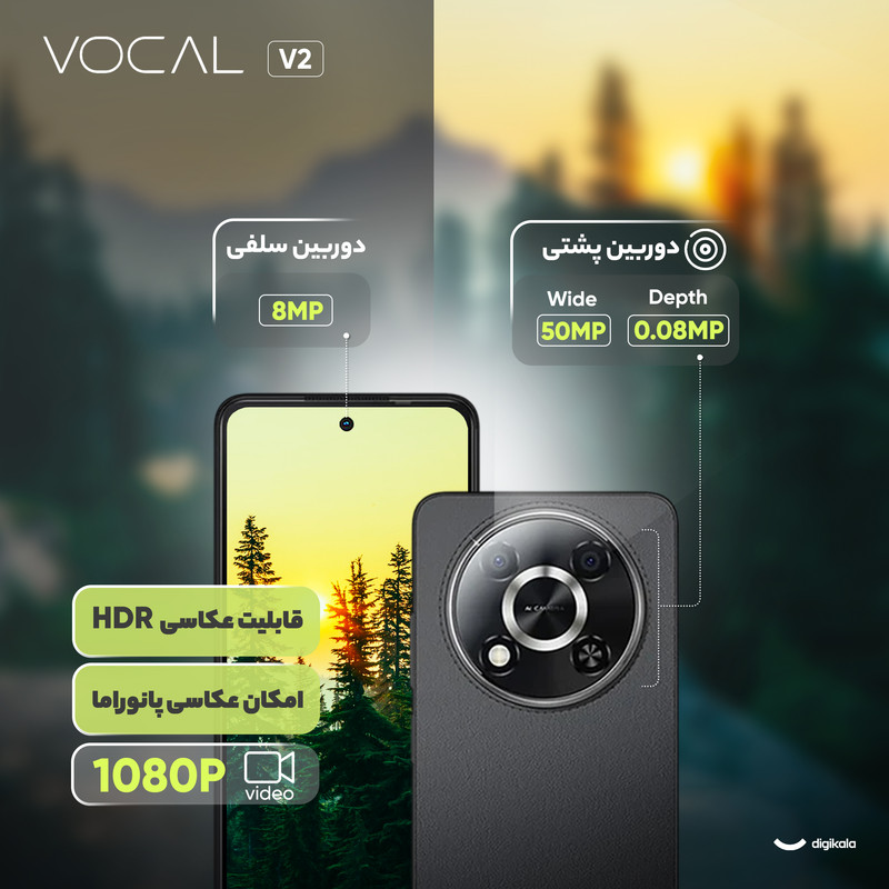 برند وکال یک برند اماراتی است که دفتر مرکزی آن در شهر دبی قرار دارد. گوشی Vocal V2 یکی از مدلهای اقتصادی جذاب در بازار کنونی است که با طراحی شیک، مشخصات کاربردی و قیمتی مقرونبهصرفه عرضه شده است. این دستگاه با ابعاد جمعوجور و قاب پشتی چرمی، ترکیبی از زیبایی و راحتی را به کاربران ارائه میدهد. نمایشگر ۶.۶ اینچی این گوشی با فناوری LED و نرخ بروزرسانی ۱۲۰ هرتز، تجربهای روان و لذتبخش را در استفاده روزمره فراهم میکند، هرچند که رزولوشن آن ۷۲۰x۱۶۱۲ پیکسل است.