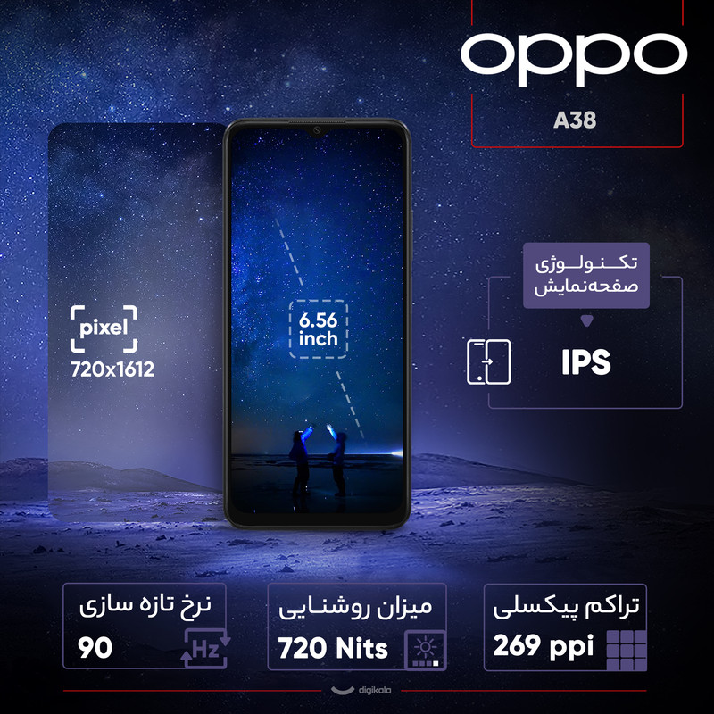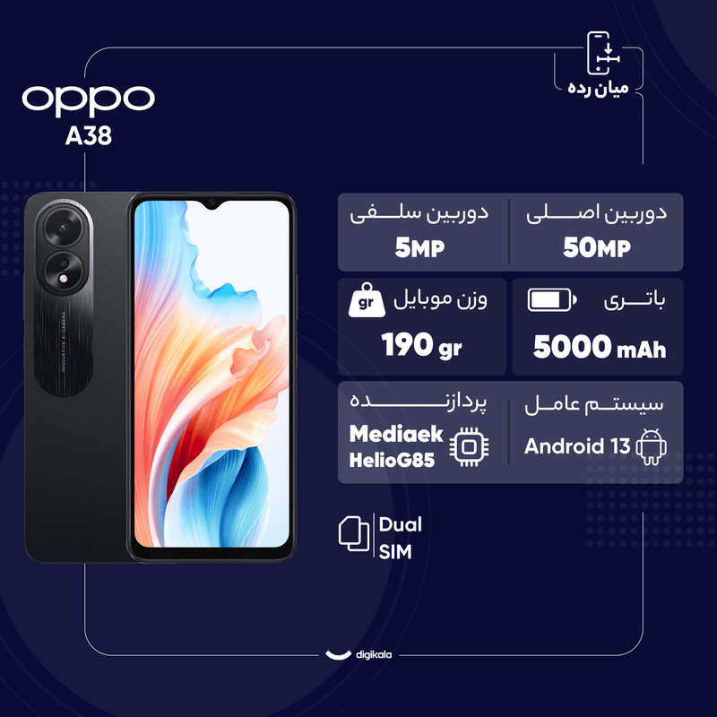 گوشی موبایل اوپو مدل A38 دو سیم کارت ظرفیت 128 گیگابایت و رم 4 گیگابایت