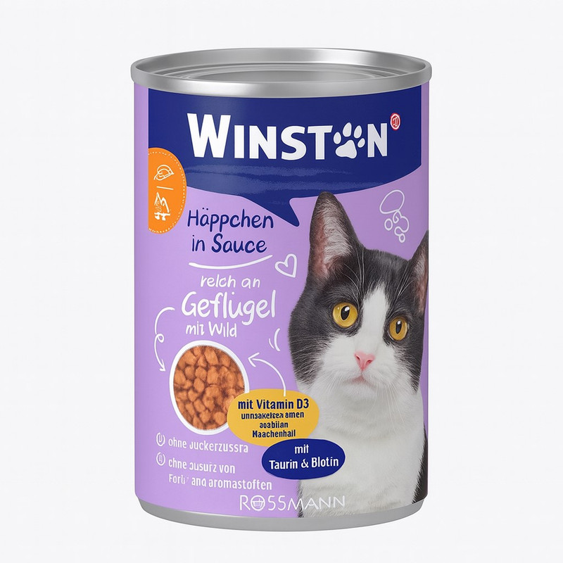 کنسرو غذای گربه وینستون مدل Häppchen in Sauce با طعم مرغ و گوشت شکار وزن 400 گرم