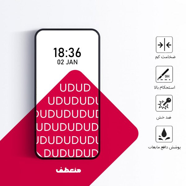 ویژگی‌ها : قابلیت نصب آسان , 9H , جلوگیری از ایجاد خط و خش , نصب بدون حباب , جلوگیری از انعکاس نور , مقاوم در برابر خط و خش , مقاوم در برابر چربی و اثرانگشت