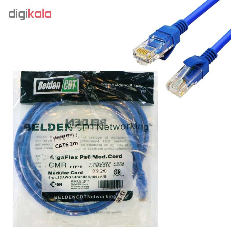 کابل شبکه رابط بین دستگاه ها در شبکه است که می تواند صفر و یک را با استفاده از ولتاژ و جریان الکتریکی منتقل کند. کابل شبکه بلدن CAT6 از استاندارد CAT6 پشتیبانی می کند. CAT6 یا Category6 یک استاندارد کابل اترنت است که توسط اتحادیه صنعت ارتباط از راه دور و اتحادیه صنایع الکترونیکی (EIA/TIA) معرفی شده است. CAT6 نسل ششم از زوج کابل های اترنت بهم تابیده شده است که در شبکه های خانگی و اداری مورد استفاده قرار می گیرد. کابل های CAT6 داده های گیگابیت اترنت را به میزان یک گیگابیت در ثانیه پشتیبانی می کند. کابل های CAT6 با استانداردهای نسل های قبلی خود یعنی کابل های CAT5 و CAT5e سازگار است. طول کابل شبکه بلدن CAT6 دو متر است.
