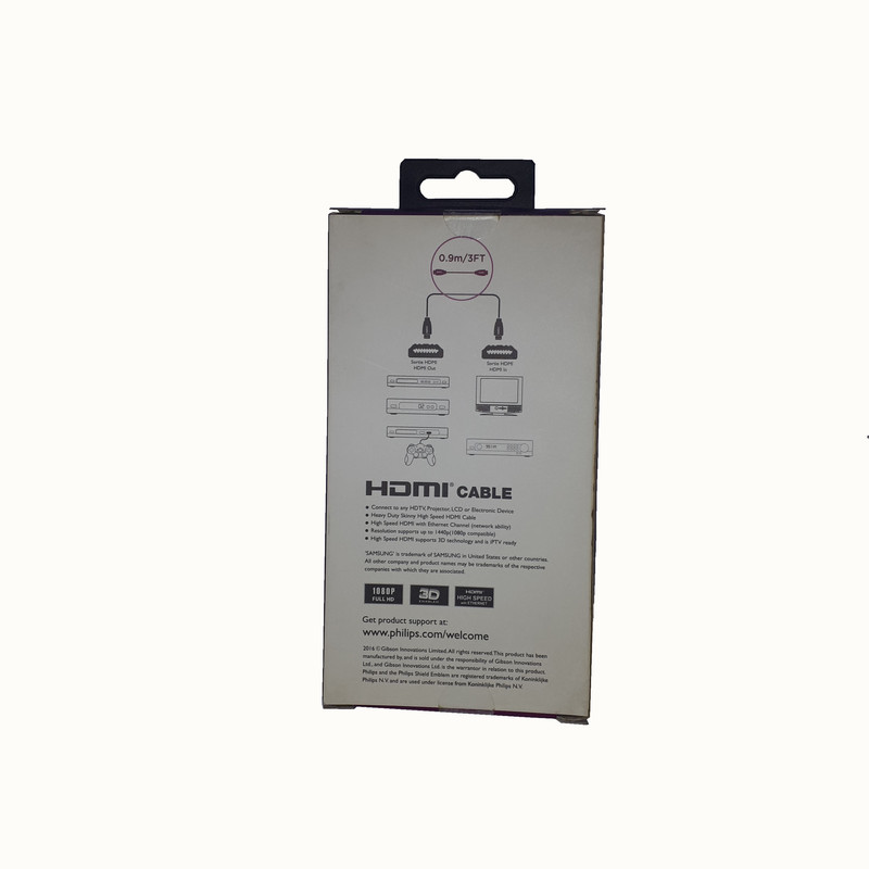 کابل hdmi فیلیپس دارای ورژن 1.4 با متراژ 90 سانت تولید شده است این کابل اصلی است و فعلا تنها کابل hdmi اورجینال موجود در بازار میباشد کیفیت سیم با ضخامت بالا و دارای قابلیت آنتی نویز را دارد.