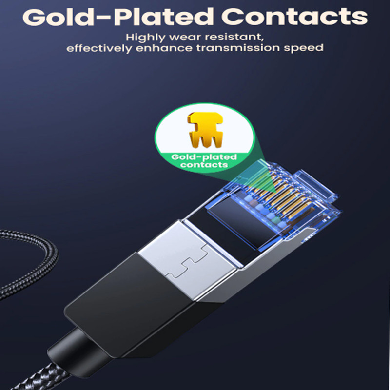 کابل شبکه CAT8 SFTP Ugreen دارای شیلد و فویل جفتی و دارای آلیاژ 100 درصد مس می باشد.
