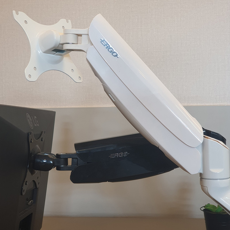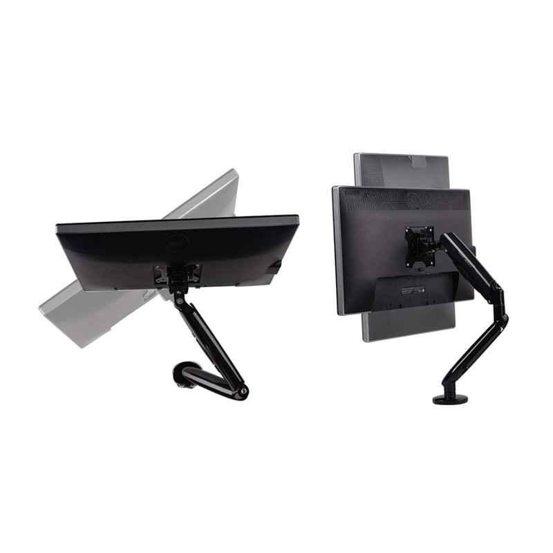 این پایه امکان گردش 360 درجه صفحه مانیتور، چرخش 15 درجه ای به سمت پایین و 85 درجه ای به سمت بالا، تنظیم فاصله دید، و گردش صفحه نمایش بصورت عمودی و افقی جهت رسیدن به بهینه ترین شرایط را فراهم می کند.