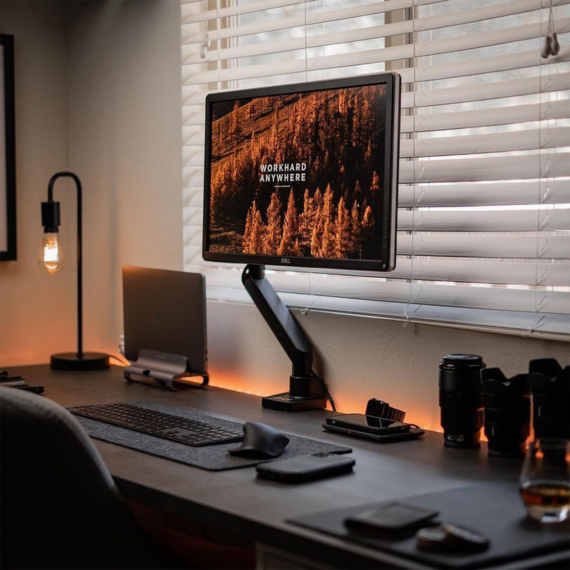 این پایه با بهره گیری از یک جک گازی و لولاهای کارآمد امکان تنظیم مانیتور در زاویه دلخواه را به سادگی و نرمی فراهم می کند.