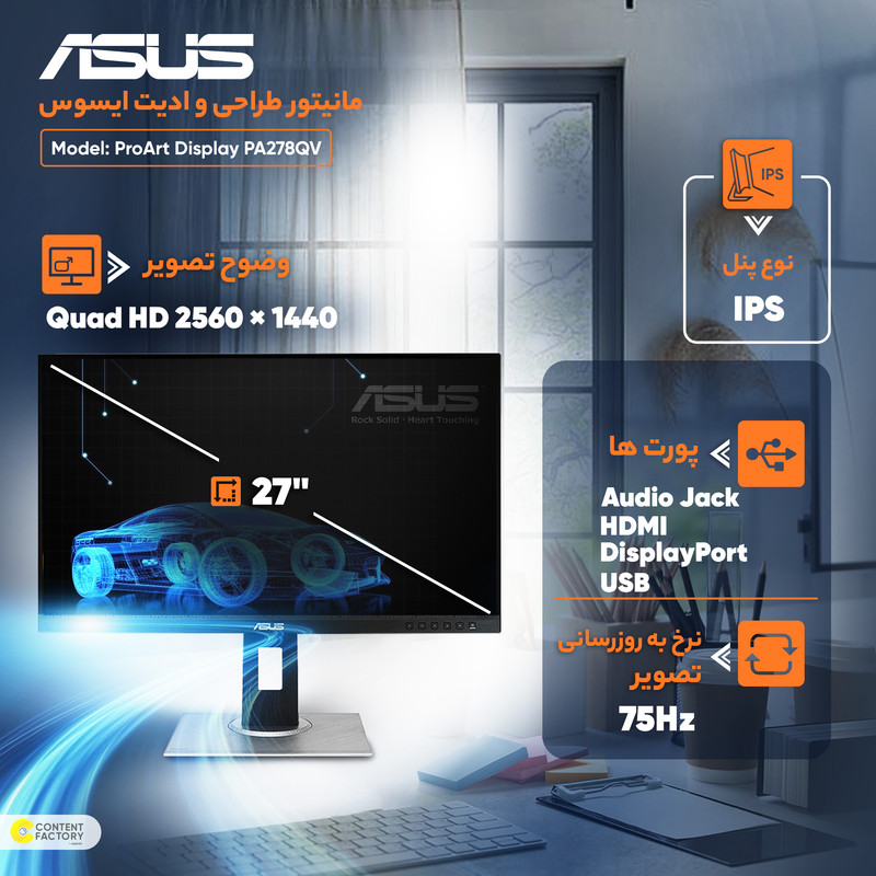 مانیتور طراحی ایسوس مدل ProArt Display PA278QV سایز 27 اینچ