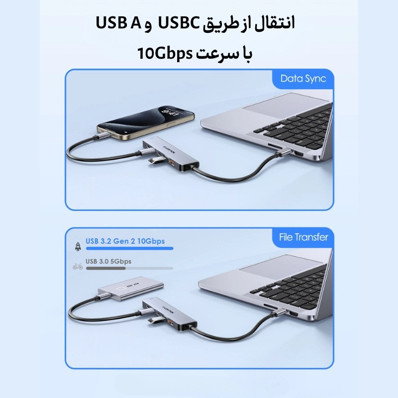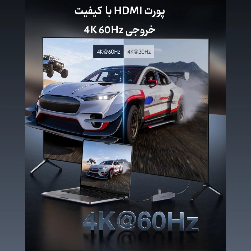 پورت خروجی : HDMI 4K, 2x USB C 3.2 Gen2, 2x USB A 3.2 Gen2, Type C Charge