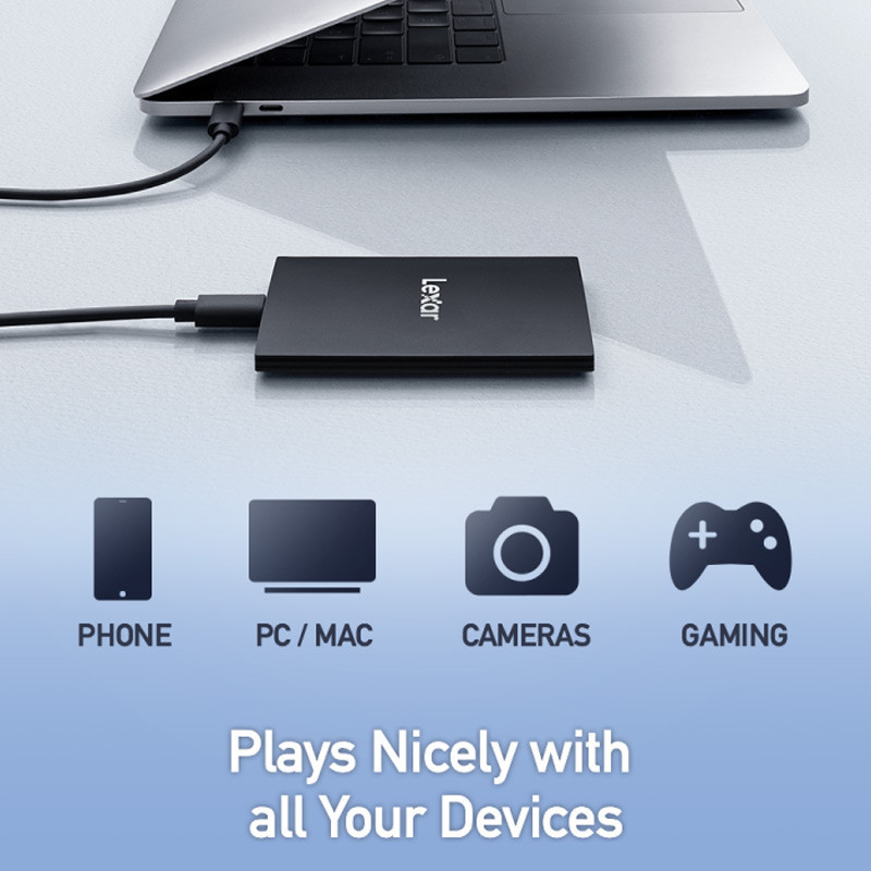 سرعت فوقالعاده خواندن تا 2000 مگابایت بر ثانیه و نوشتن 1800 مگابایت بر ثانیه انتقال دادهها را برای کار تسریع میکند و تقریباً به اندازه یک کارت اعتباری با ضخامت 4.8 میلی متر، ساختار یکپارچه آلومینیومی باریک و جامد به راحتی در کف دست یا جیب شما قرار می گیرد. SSD قابل حمل Lexar® SL500 از ضبط Apple Pro Res پشتیبانی می کند. با آیفون 15 پرو و آیفون 15 پرو مکس مستقیماً از درایو با حداکثر سرعت 4K 60 فریم در ثانیه فیلمبرداری کنید SSD قابل حمل Lexar® SL500 با رایانه های شخصی، مک، دستگاه های اندروید، سری آیفون 15، کنسول های بازی، دوربین ها و غیره سازگار است. شامل Lexar DataShield™، با رمزگذاری AES 256 بیتی، برای کمک به حفظ امنیت فایل های حساس شما