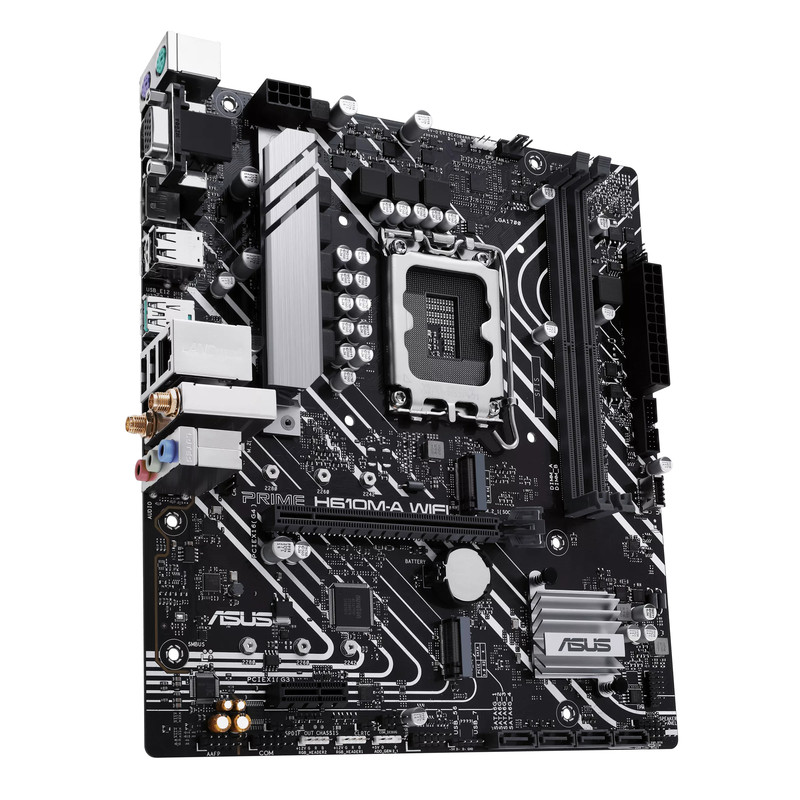 بسیاری از کاربران بهدنبال خرید مادربردهای میانردهای هستند که در کنار بهره بردن از مشخصات فنی مناسب، قیمت مناسب به نسبت بسیاری از مادربردهای دیگر داشته باشند. مادربرد ایسوس PRIME H610M-A WIFI هم یکی از این محصولات است که در کنار قیمتی مقرون بهصرفه، مشخصات فنی مناسب و قابل قبولی را با خود بههمراه داشته است. طراحی در نظر گرفته شده در همان نگاه اول خود را بهعنوان یک مادربرد میانرده معرفی میکند و البته میتوان گفت طراحی مناسب و کاربر پسندی هم دارد. دو اسلات رم در نظر گرفته شده برای این مادربرد از نوع DDR5، توانایی پشتیبانی از حداکثر میزان ظرفیت 96 گیگابایت را دارند و چیپست H610 شرکت اینتل هم این مادربرد را همراهی میکند. ایسوس سعی داشته تا با بهره بردن از متریال مناسب، کیفیت ساخت مطلوبی را ارائه کند و از طرفی از افزایش دما در ترافیک کاری بالا جلوگیری کند که میتوان گفت تا میزان قابل توجهی در این امر موفق بوده است. یک اسلات PCIe 4.0 x16 هم برای نصب کارت گرافیک در نظر گرفته شده است. در بخش پنل پشتی هم میتوان گفت در جایگاه یک مادربرد میانرده، تعداد درگاههای مناسب و متنوعی را شاهد هستیم که امکان اتصالی آسان با دستگاههای دیگر را فراهم کرده است.