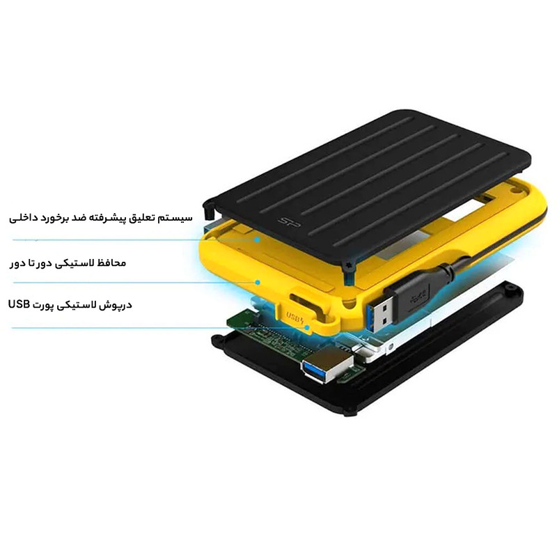 هارد اکسترنال سیلیکون پاور مدل Armor A66 ظرفیت یک ترابایت دارای رابط USB Type-A 3.2