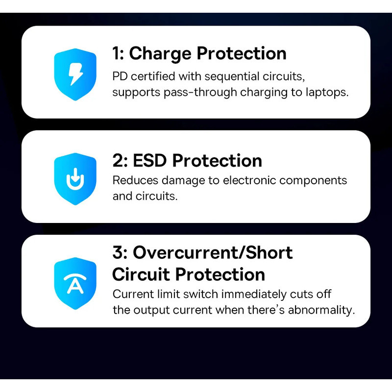 امکانات و قابلیتها : دو پورت USB 3.0 و یک پورت USB-C با سرعت انتقال داده 5Gbps - یک پورت USB 2.0 با سرعت انتقال داده 480Mbps - پورت HDMI 4K@60hz - پورت PD 100w