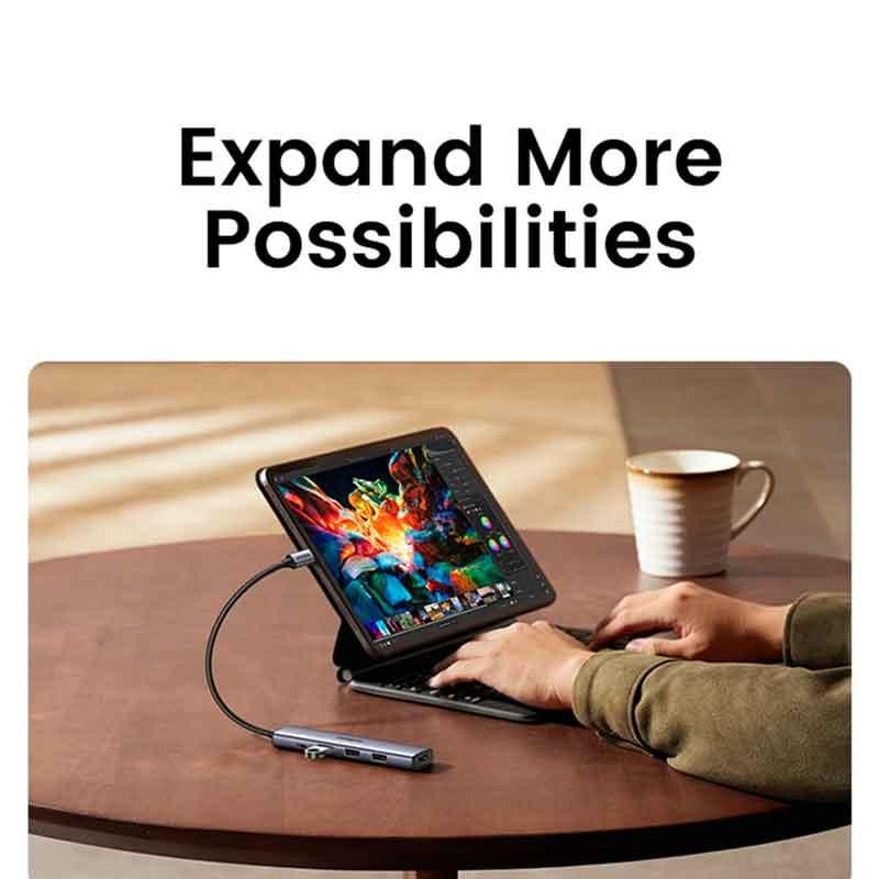 هاب 5 پورت USB-C یوگرین مدل CM478-15495 از USB ورژن USB3.0 و دو USB ورژن USB2.0، یک پورت USB-C و یک خروجی HDMI با سرعت بالا پشتیبانی میکند، که این امکان را به کاربر می دهد به راحتی بتواند ابزارهای جانبی مختلفی مانند کیبورد ، ماوس ، دوربین و حتی پرینتر خورد را متصل کند.