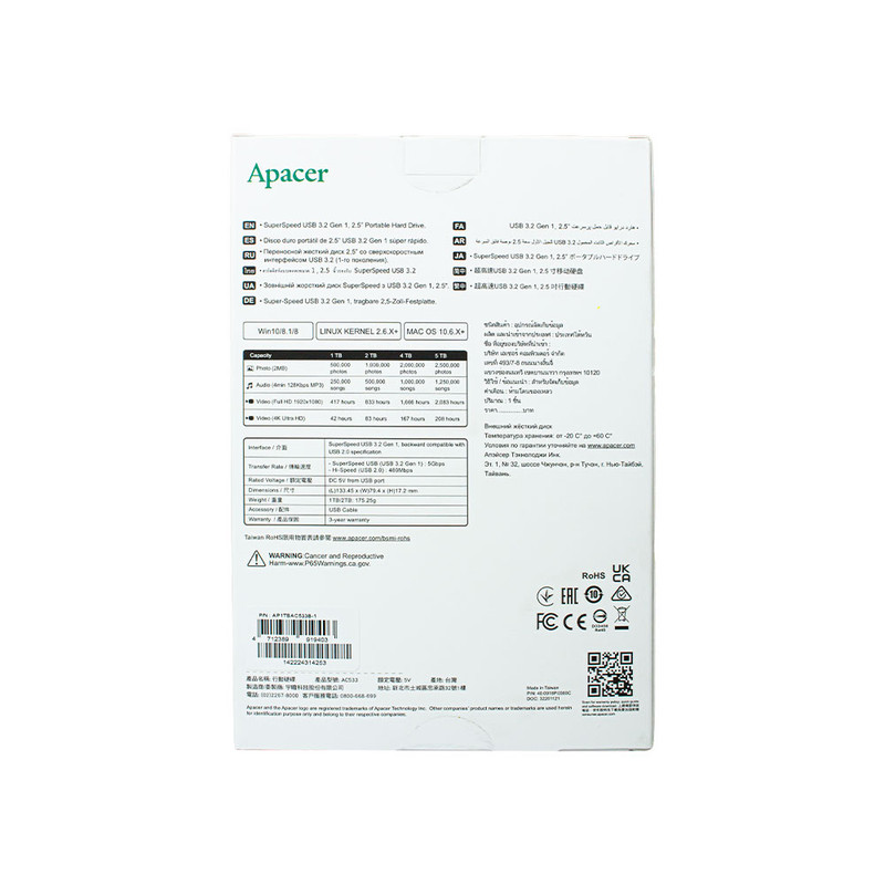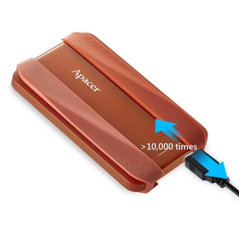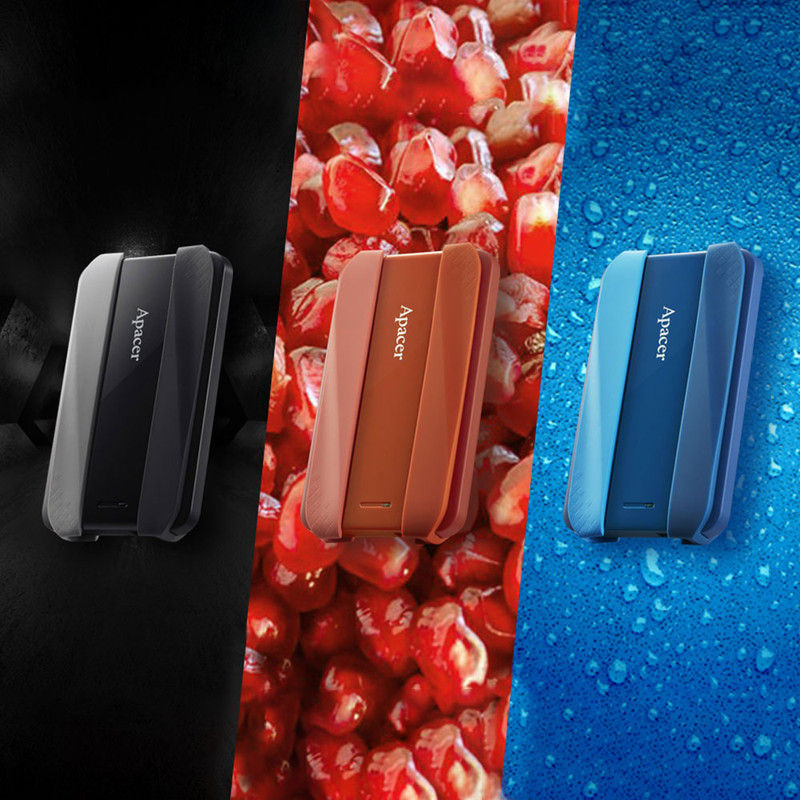 دستگیره های لاستیکی دوگانه AC533 محافظت ایمنی برای محیط بیرونی، کاهش نیروی ضربه و کاهش خطر آسیب دیدگی هارد دیسک را فراهم میکند و به کاربران اجازه میدهد هنگام حمل هارد خود در دنیای واقعی احساس امنیت کنندهارد دیسک قابل حمل AC533 USB 3.2 Gen 1 در سه رنگ چشم نواز عرضه می شود: قرمز گارنتی، آبی پر جنب و جوش و مشکی. رنگی را انتخاب کنید که با سلیقه شما مطابقت داردمدلهای با ظرفیت بزرگ AC533 تا 5 ترابایت فضای ذخیرهسازی را برای نیاز به فضای ذخیرهسازی انبوه شما مانند فایلهای حجیم، تماشای فیلمهای HD و یا مرور مجموعه تصاویر در حال حرکت، ارائه میکنند.هارد دیسک قابل حمل AC533 USB 3.2 Gen 1 با رابط استاندارد USB 2.0 سازگار است. چراغهای LED دو رنگ به ترتیب وضعیت انتقال USB 3.0 (آبی) یا USB 2.0 (قرمز) را نشان میدهند و به وضوح حالت فعلی درایو را شناسایی میکنند. کاربران میتوانند با یک نگاه وضعیت را تعیین کنند.