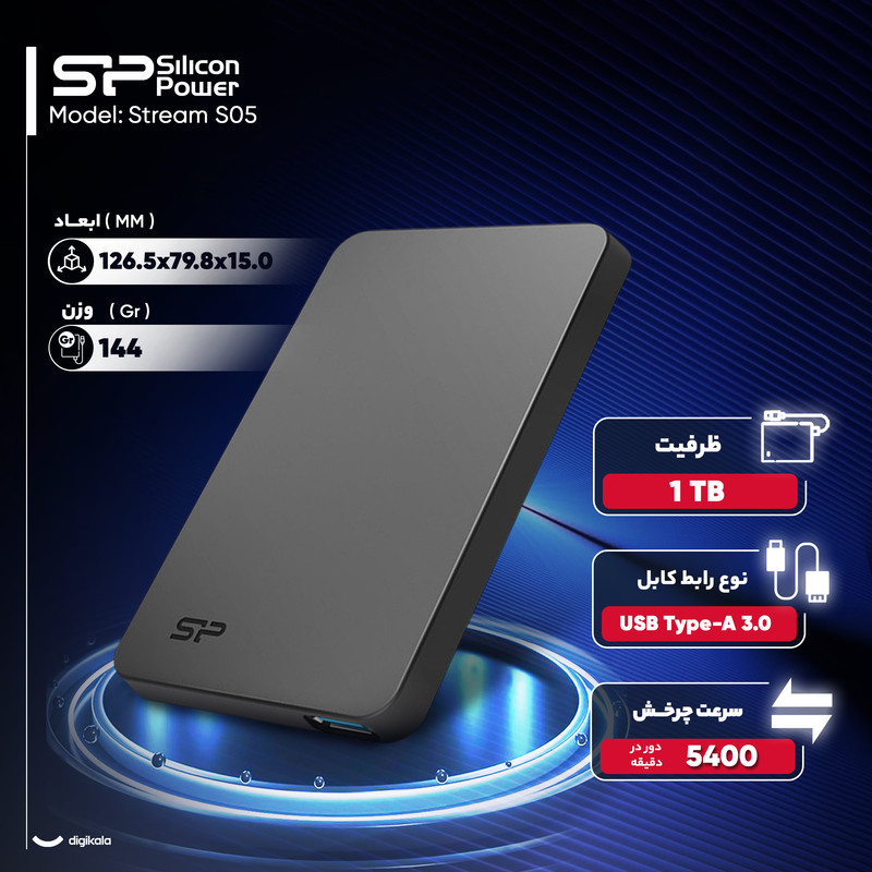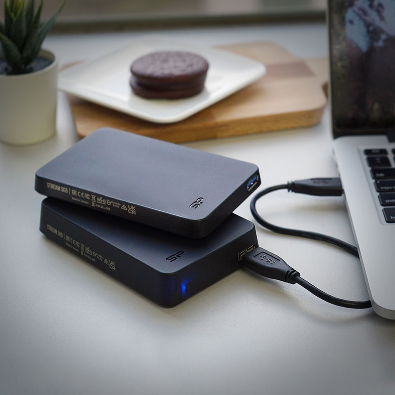 هارد اکسترنال سیلیکون پاور Stream S05 با ظرفیت یک ترابایت طراحی شده تا کاربران تجربهای ساده، سریع و قابل حمل از ذخیرهسازی دادهها داشته باشند. بدنه دستگاه از پلاستیک مات ساخته شده که مقاومت بالایی در برابر خط و خش و گرد و غبار دارد و اثرانگشت روی آن باقی نمیماند، بنابراین ظاهر هارد همواره تمیز و مرتب باقی میماند. وزن سبک ۱۴۴ گرمی و ابعاد کوچک ۱۲۶.۵x۷۹.۸x۱۵ میلیمتر، حمل و نقل آن را آسان کرده و اجازه میدهد در کیف لپتاپ یا کولهپشتی قرار گیرد.