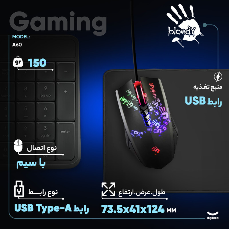 ماوس بی سیم مخصوص بازی بلادی مدل A60