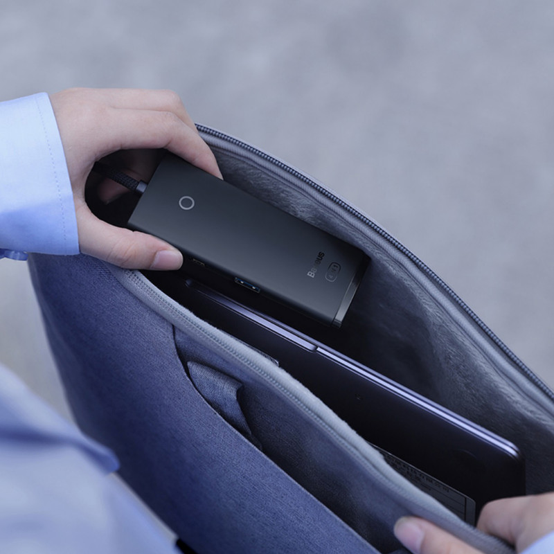هاب WKQX03040 دارای یک کابل متصل به طول 1 متر است. بدنه مبدل از آلیاژ آلومینیوم و پلاستیک مقاوم TPE ساخته شده است که در برابر خط و خش مقاوم و ضد اثر انگشت بوده. استفاده این مبدل بیشتر برای وقتی است که میخواهید چندین دستگاه از قبیل موس و کیبورد و فلش مموری یا پرینتر را همگی به درگاه USB لپ تاپتان وصل کنید. خب مسلما لپ تاپ شما برای همه اینها پورت نخواهد داشت و در این حالت استفاده از هاب 4 پورت بیسوس Baseus WKQX03040 میتواند بسیار کمک کننده باشد. این هاب دارای 4 پورت USB3.0 است که میتوانند سرعت انتقال داده ای برابر با 5Gbps یعنی 10 برابر بیشتز از نسخه های قدیمی USB را برای کاربر فراهم کند.