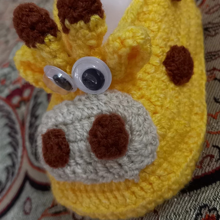 پاپوش نوزادی طرح عروسکی زرافه ای خرسی گربه ای ببری از جنس پنبه یدون حساسیت برای کودکان نازنین